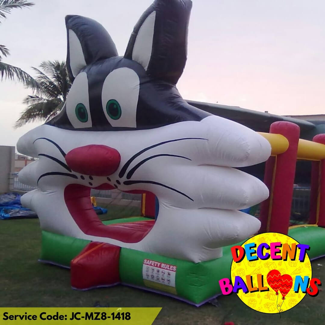 With exaggerated features like wide eyes, black-and-white ears, a red nose, and whiskers, the inflatable resembles Sylvester the Cat β one of Looney Tunesβ most beloved characters. Kids crawl through the open mouth ramp and bounce inside the belly of this oversized cartoon figure. The bold design and vibrant colors make it a hit for themed parties and photo ops ππΈ.
