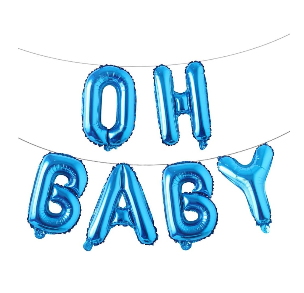 Oh Baby" foil balloon is a popular choice for celebrating the anticipation and excitement of a new baby's arrival. These balloons typically feature the phrase "Oh Baby" in a stylish and eye-catching font, often accompanied by other adorable baby-related designs and embellishments.Blue “Oh Baby” Foil Balloon