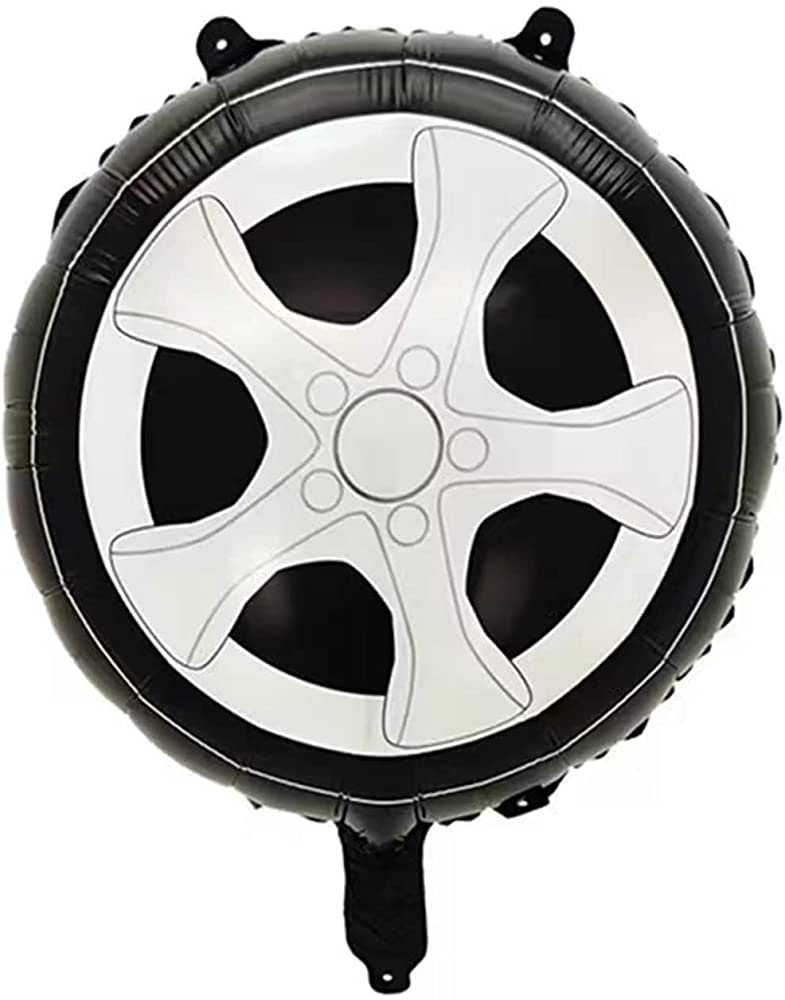 A car wheel foil balloon is a type of decorative balloon that is shaped like a car wheel or tire and made out of foil material. It is often used as a party decoration for car-themed events, automotive enthusiasts, or car-related celebrations. Foil balloon car wheel