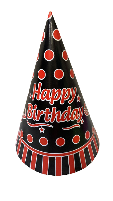 Red and black birthday caps are vibrant and stylish party accessories designed to add a touch of elegance and excitement to any birthday celebration. These caps feature a combination of red and black colors, with contrasting patterns or decorations, creating a visually striking and eye-catching look. Fiesta Birthday caps