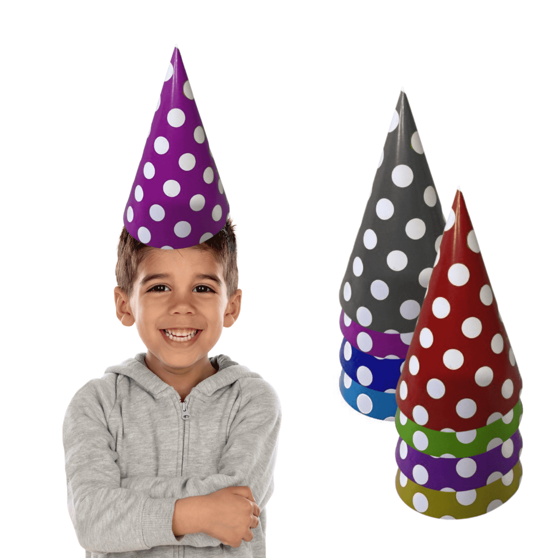 Make your party extra vibrant and exciting with these Polka Dot Party Hats! Featuring a classic cone-shaped design with cheerful polka dots, these hats are perfect for birthdays, school parties, themed celebrations, baby showers, and festive events. Designed for both kids and adults, these lightweight and comfortable hats stay securely in place with an elastic band, ensuring hours of fun and laughter at your party!