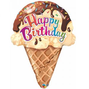 An ice cream foil balloon is a type of decorative balloon that is shaped like an ice cream cone or a scoop of ice cream and made out of foil material. It is often used as a party decoration for ice cream socials, summer parties, or birthday celebrations, particularly for children. happy birthday balloon icecream shape foil balloon