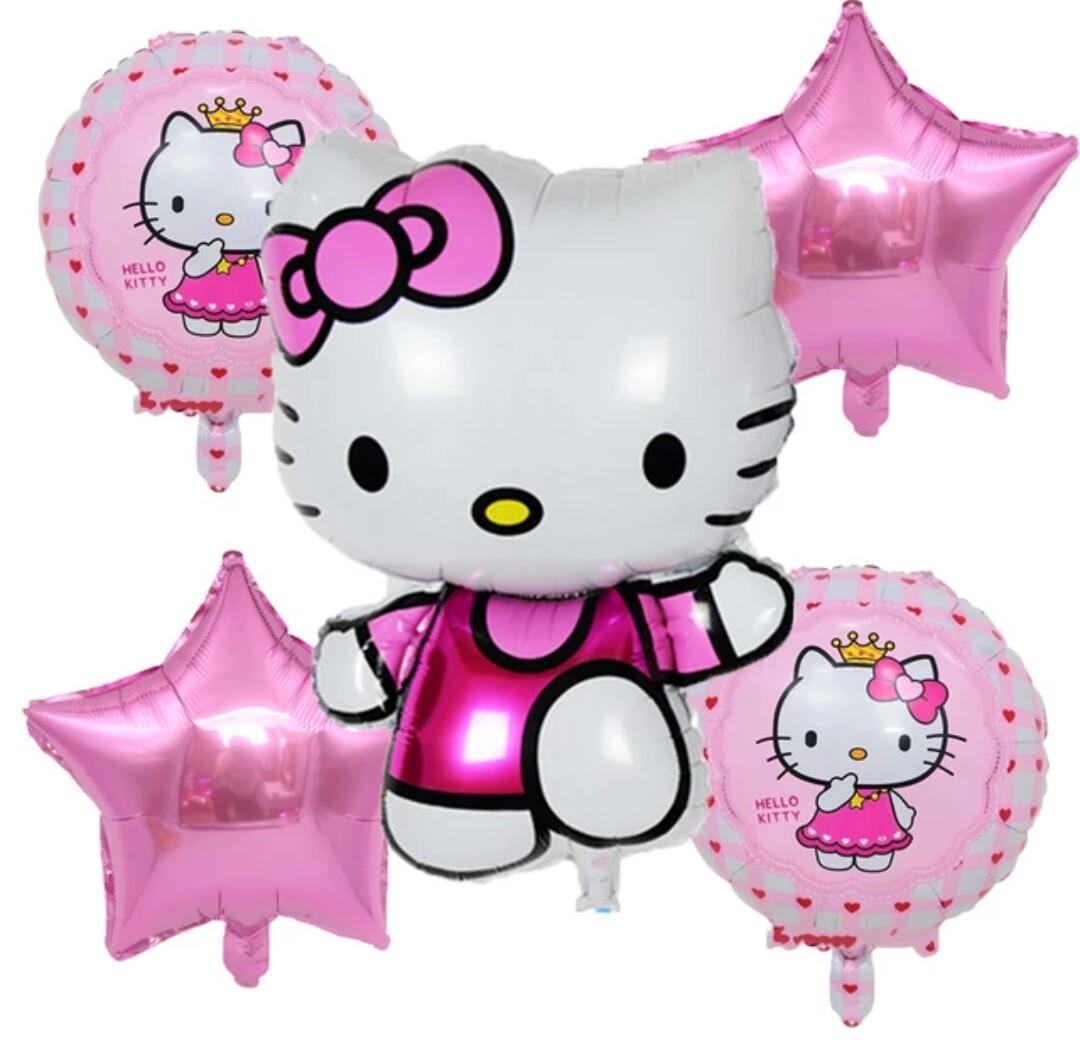 A Hello Kitty foil balloon 5-piece set is an adorable and charming decoration package that includes five individual balloons, all featuring the beloved character Hello Kitty. Each balloon in the set is made from metallic foil material, providing a shiny and reflective surface that adds a touch of cuteness to any Hello Kitty-themed event or celebration. Hello Kitty shape Balloon Bouquet