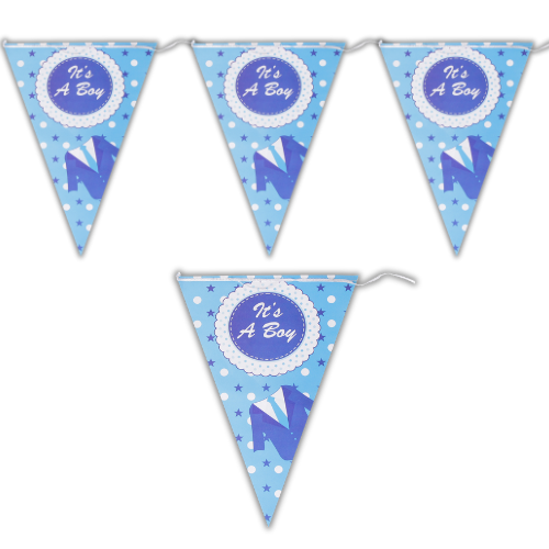 Make your baby shower or newborn welcome party extra special with this adorable blue "It's a Boy!" flag bunting. Featuring a classic blue polka dot design, this lightweight and easy-to-hang banner is a must-have party decoration. Whether you're hosting a gender reveal, baby shower, or hospital welcome event, this budget-friendly décor piece adds a festive touch to your celebration.