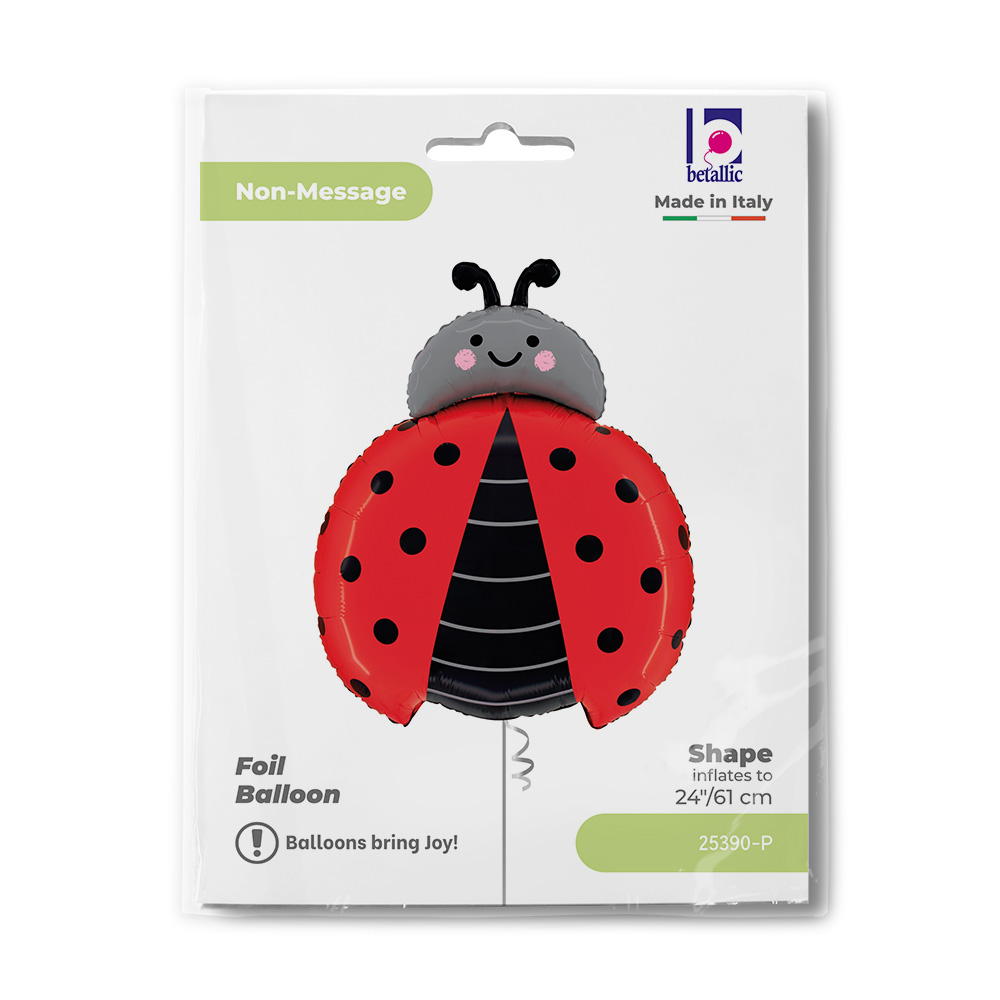 The Ladybug Foil Balloon is a delightful decoration that brightens up any celebration with its playful and colorful design. Shaped like a charming red ladybug with black spots and a cute smiling face, this balloon adds fun and personality to party setups. Made in Italy by Betallic, this high-quality foil balloon inflates to 24 inches (61 cm), making it a striking addition to backdrops, balloon bouquets, or standalone centerpieces. Lightweight and helium-compatible, it ensures easy handling and long-lasting inflation. Perfect for kids' birthdays, garden-themed events, or cheerful decor setups, this balloon is a favorite for spreading joy and whimsy.