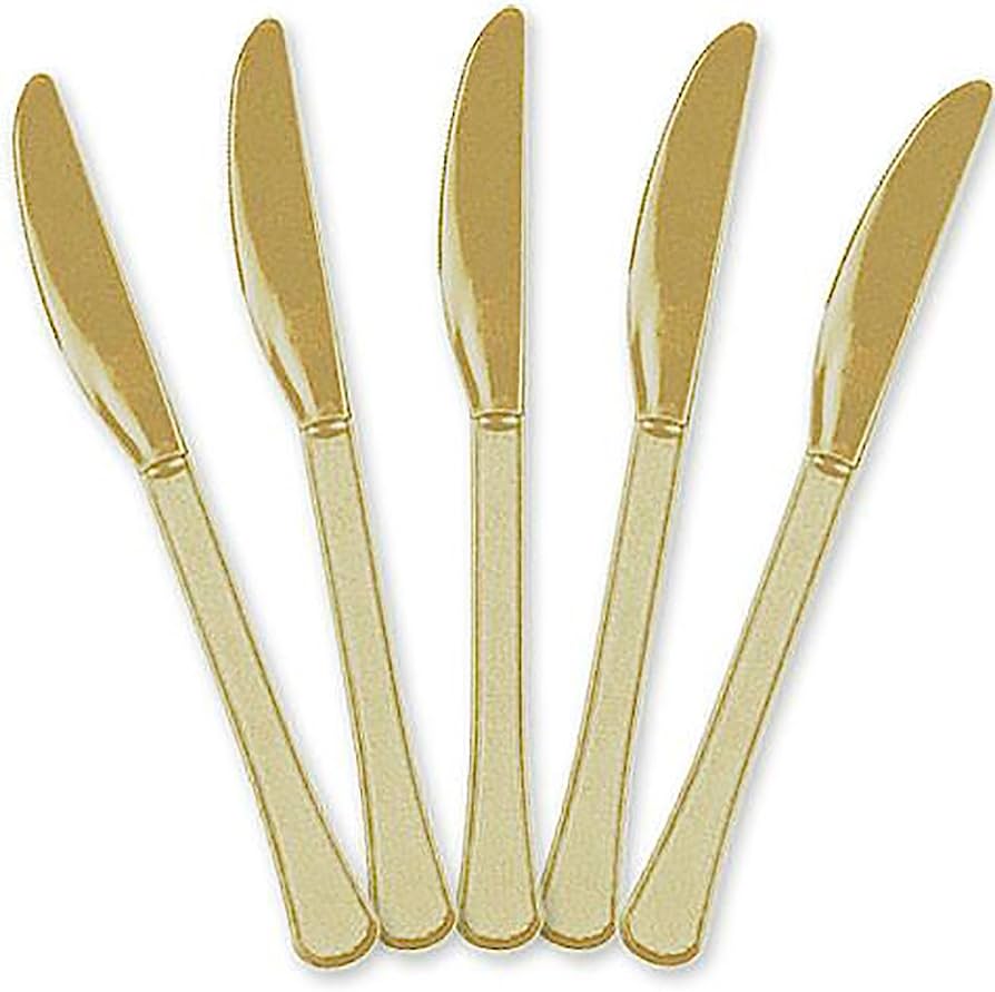 Go for an elegant table setting and include these Gold Premium Plastic Knives. Complement these with other gold premium tableware for a touch of class to your table setting. Gold Plastic Knives, Pack of 24
