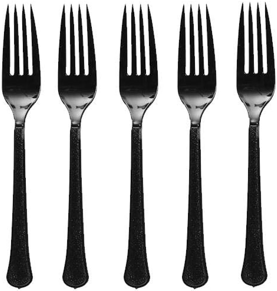 Time to grab that yummy food on the table! Make sure to set your table and complete it by including these strong and durable Jet Black Heavyweight Plastic Forks that come in strong and durable solid black color. Pack includes 24 plastic forks.Black Plastic Forks, Pack of 24