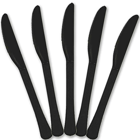 Time to grab that yummy food on the table! Make sure to complete your table setting with these strong and durable Jet Black Heavy Weight Knives that come in solid black color. Black Plastic Knives, Pack of 24