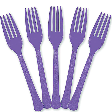 Get everyone all hyped up to grab that yummy food on the party table! Complete your colorful table setting and add a festive vibe to it by including these bright purple heavyweight plastic forks. Match these with same colored tableware to achieve a fantastic coordinated theme. Package includes 24 plastic forks.Dark Purple Plastic Forks, Pack of 24