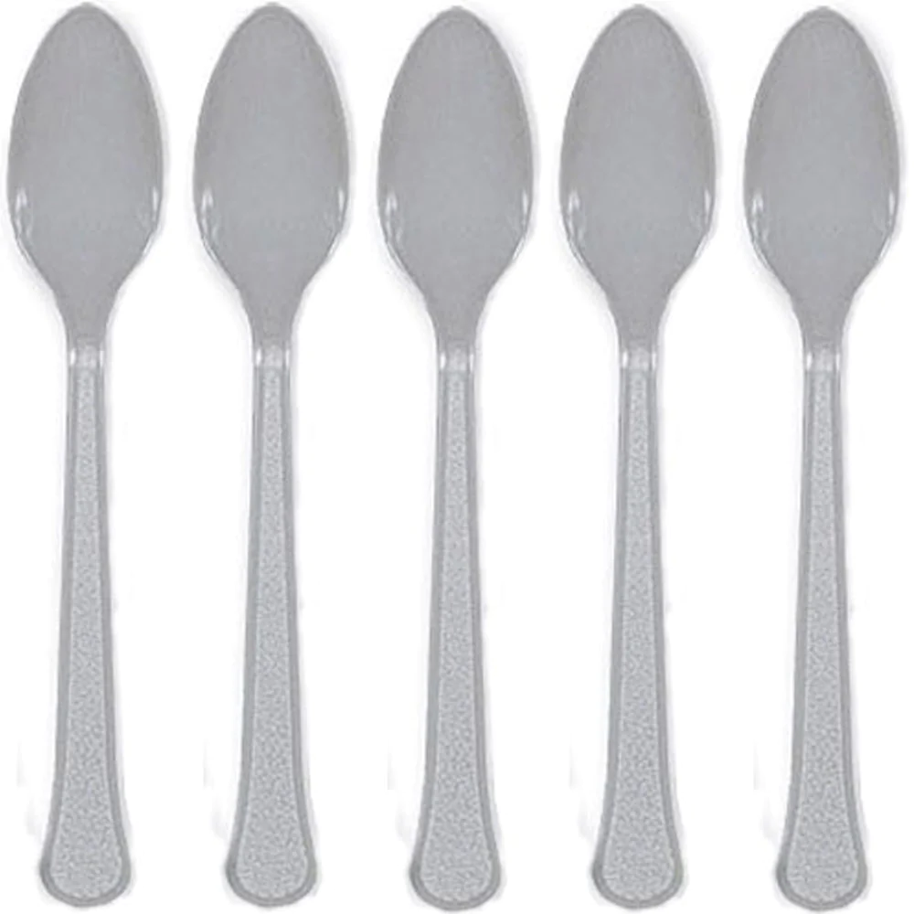 Complete the classic look on your party by adding these Silver Heavy Weight Plastic Spoons to your table setting! These disposable spoons come in solid silver color that can neutrally suit any kind of party occasion and theme. Silver Plastic Spoons, Pack of 20