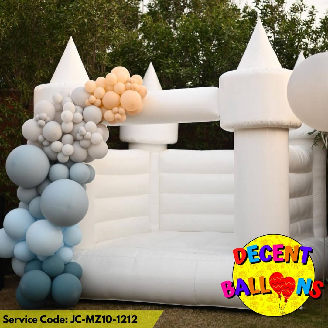 Its clean white silhouette features four pointed turrets and a spacious bounce zone, making it ideal for toddlers, kids, and photo-ready setups. The neutral design blends seamlessly into any theme, giving you full creative freedom to style your event your way ππΈ